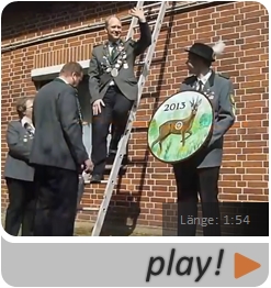 Scheibe anbringen beim neuen Schützenkönig 2013