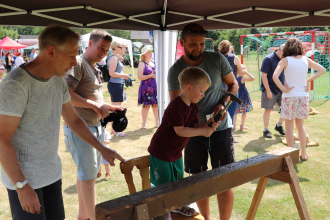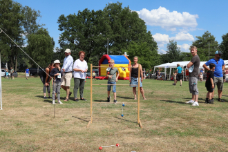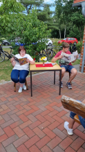 Bei bestem Wetter gastierten am Donnerstag, den 23.06.2022 Tanja und Felix Wegner vom Kindertheater SCHNURZePIEPE aus Bremen mit dem Stück „Petterson zeltet“ in Eitze auf dem Spielplatz am Dorfgemeinschaftshaus. Sie bauten unter dem großen schattigen Magnolienbaum ihre Bühne auf und mehr als 60 große und kleine Theaterfans machten es sich auf Picknickdecken oder mitgebrachten Stühlen drumherum bequem und genossen das Stück, das mit viel Liebe zum Detail gespielt wurde. Einige Kinder waren so begeistert, dass sie nach der Vormittagsvorstellung für das Kinderhaus am Nachmittag gleich ein zweites Mal zuschauten.
