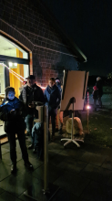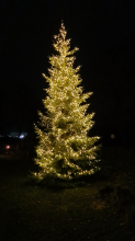 Am 26. November fand die 3. Weihnachtsbaum-Beleuchtungs-Zeremonie am Schützenhaus statt. "In diesem Jahr haben wir einen sehr großen Baum. Um genau zu sein ragt er 7,30 Meter aus der Erde und wurde mit 3.000 LED's geschmückt", verriet Patrick Panning als Initiator der Veranstaltung. Nur mit viel Kraft und fleißigen Helfern konnte der Baum, der von Wolfgang Badenhoop gestiftet wurde aufgestellt werden. Für das schmücken musste sogar ein Steiger besorgt werden.