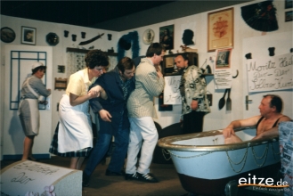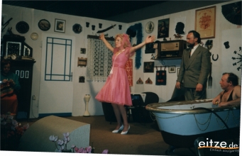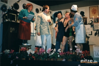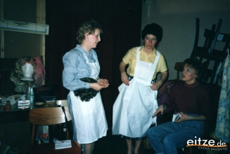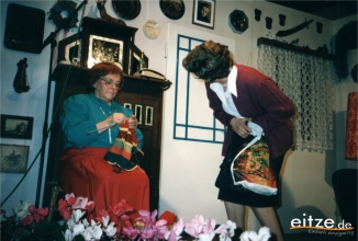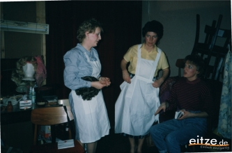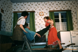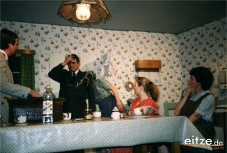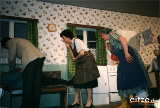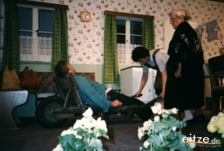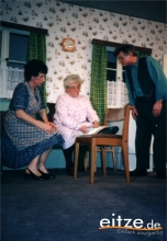 Schon vor 25 Jahren war das Stück ein ausgesprochener Theatererfolg und manche Rolle werden die älteren unter unseren Besuchern mit alten Bekannten wie vor 25 Jahren besetzt finden, wie z.B. Gerda Bohnet als schlagfertige Oma oder Harald Brockmann als Dorfpolizist. Auch Irmgard Dirks geb. Panning spielte damals mit, wenn auch in einer anderen Rolle.