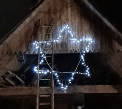 Mit selbstgemachten Sternen aus Ästen und Lichterketten möchten wir viele Häuser in Eitze im Schein des Sternes sehen.