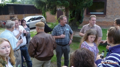Monika Hamann, amtierende Schützenkönigin in Dauelsen, hat am vergangenen Dienstag (02.10.2012) Ihre Schützenscheibe ans Haus angenagelt bekommen. Viele Mitglieder aus dem Schützenverein Dauelsen wollten sich den Moment nicht entgehen lassen und machten sich auf den Weg zum Hexenmoor nach Eitze. Dort wurden Sie vom Eitzer Schützenverein und einer Straßensperre begrüßt. "Stop Zoll!" steht auf einem Schild vor der gelb-schwarzen Schranke. Der 1. Vorsitzende des Eitzer Schützenvereins begrüßte die Daulsener mit folgenden Worten: