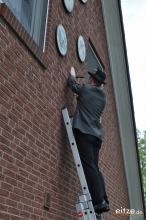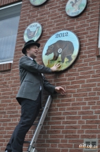 Am Abend trafen sich die Eitzer Schützen bei der Juniorenkönigin Laura Skop, um ihre Schützenscheibe aufzuhängen. Der erste Vorsitzende Gerd Blome brachte die Scheibe an die Hauswand und las einen kleinen Reim vor.