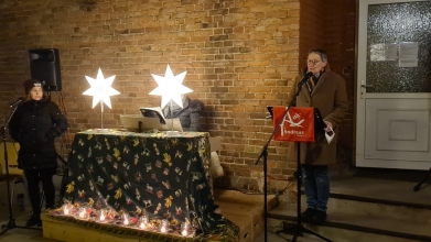 Auf dem Parkplatz am Dorfgemeinschaftshaus war alles festlich hergerichtet, um der Andacht einen schönen Rahmen zu geben. Die Gemeindemitglieder kamen und haben gemeinsam gebetet, Gedichten zugehört, gesungen und den Segen erhalten. Und trotz der widrigen Umstände verbreitete sich das Gefühl, dass der Advent eine Zeit der Vorfreude, der Vorbereitung und der Erwartung ist – und dass dieses umso schöner ist, wenn man es gemeinsam erleben kann.