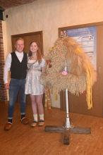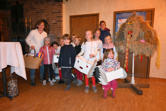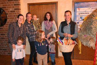 Zu allererst aber sprach die Erntebraut Malin Jacobs auf dem Saal vor großem Publikum das Erntegebet. Sie dankte Gott für seine Fürsorge und erbat seinen Schutz. Danach tanzte das Erntepaar mit der Krone. Bei der anschließenden Kaffeetafel gab es leckeren selbstgebackenen Kuchen. Zum Ende des Nachmittags fand dann die von allen Anwesenden mit Spannung erwartete Prämierung der Umzugsteilnehmer statt. Den 40 Juroren hatten die Eitzer Störche des Kindertreffs am besten gefallen. Sie hatten wochenlang bei dem wöchentlichen Basteltreff ihre Kostüme und Roller selbst gestaltet und geschmückt. Den zweiten Platz erreichten die Eitzer Kicker. Und der Wagen der Erntepaare mit dem Motto „Gute Laune, Bier im Magen, heute fahr´n wir Erntewagen“ belegte den dritten Platz. Für jede teilnehmende Gruppe gab es einen Korb: Für die Erwachsenen mit Wurst, Käse, Brot und Obst gefüllt, für die Kinder mit Spielsachen, Süßigkeiten und einer Eintrittskarte fürs Verwell.