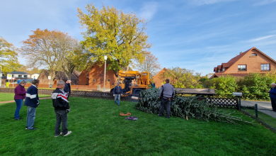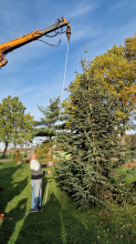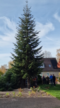 Am Freitag, 11. November wurde der diesjährige Eitzer Weihnachtsbaum gefällt und am Schützenhaus aufgestellt.
