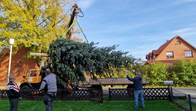 Die Nordmanntanne, welche von Georg Lackemann spendiert wird ragt nun 6,00 Meter aus dem Boden und wird in den nächsten Tagen mit Hilfe eines Steigers mit 3.000 energieeffizienten LED-Birnchen verziert. Zuvor musste die Tanne mit schwerem Gerät auf den Anhänger gehoben werden, damit sie zum Eitzer Schützenhaus im Hexenmoor transportiert werden konnte. Vor Ort wurde sie mit der Kranfunktion des Unimogs auch in die Bodenhülse eingelassen.